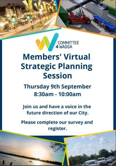 Championing positive change through leadership, action, and collaboration for a thriving Wagga Wagga is possible through engagement with our members. We invite you to join us for a Strategic Planning Session and share your thoughts on the future direction of our City.