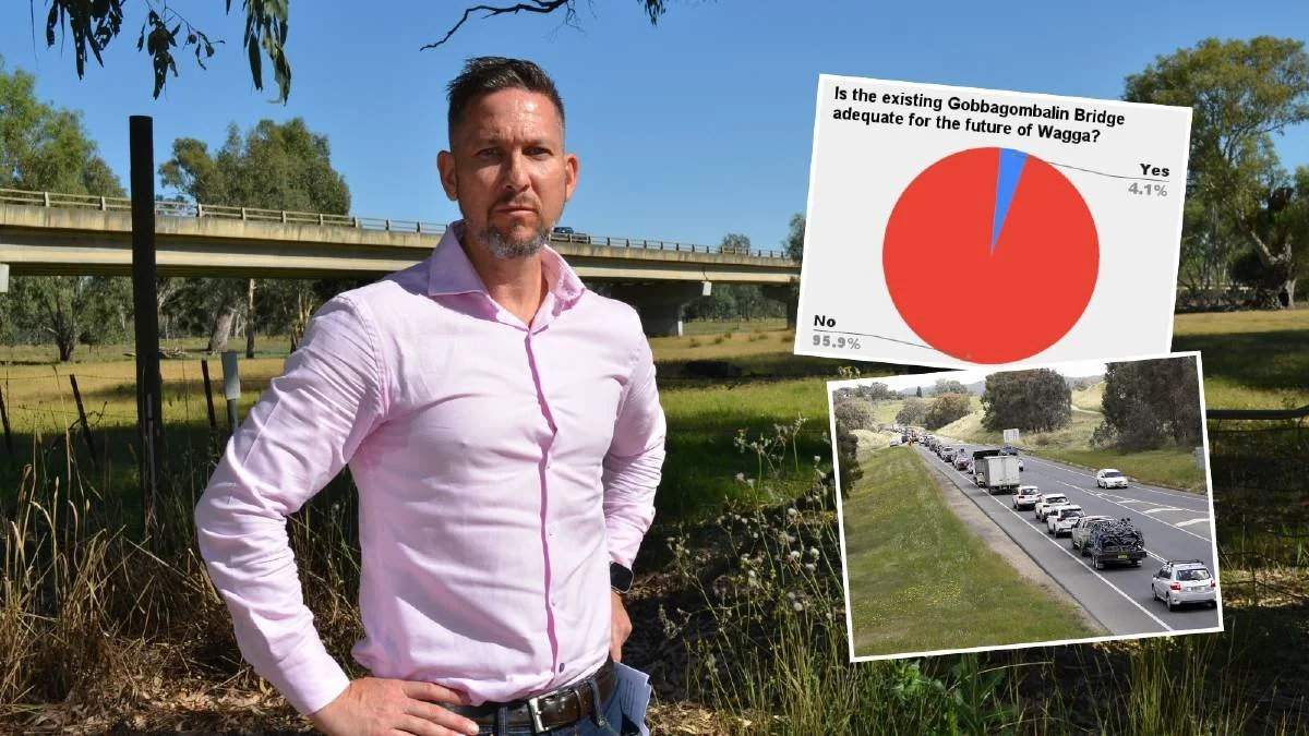 Committee 4 Wagga chair Adam Drummond says the survey findings show the duplication of Gobbagombalin Bridge is a key priority for the city. Pictures by Monty Jacka, Les Smith
